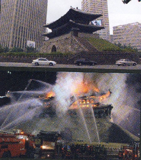 Великие южные ворота, расположенные в самом центре южнокорейской столицы были уничтожены в результат